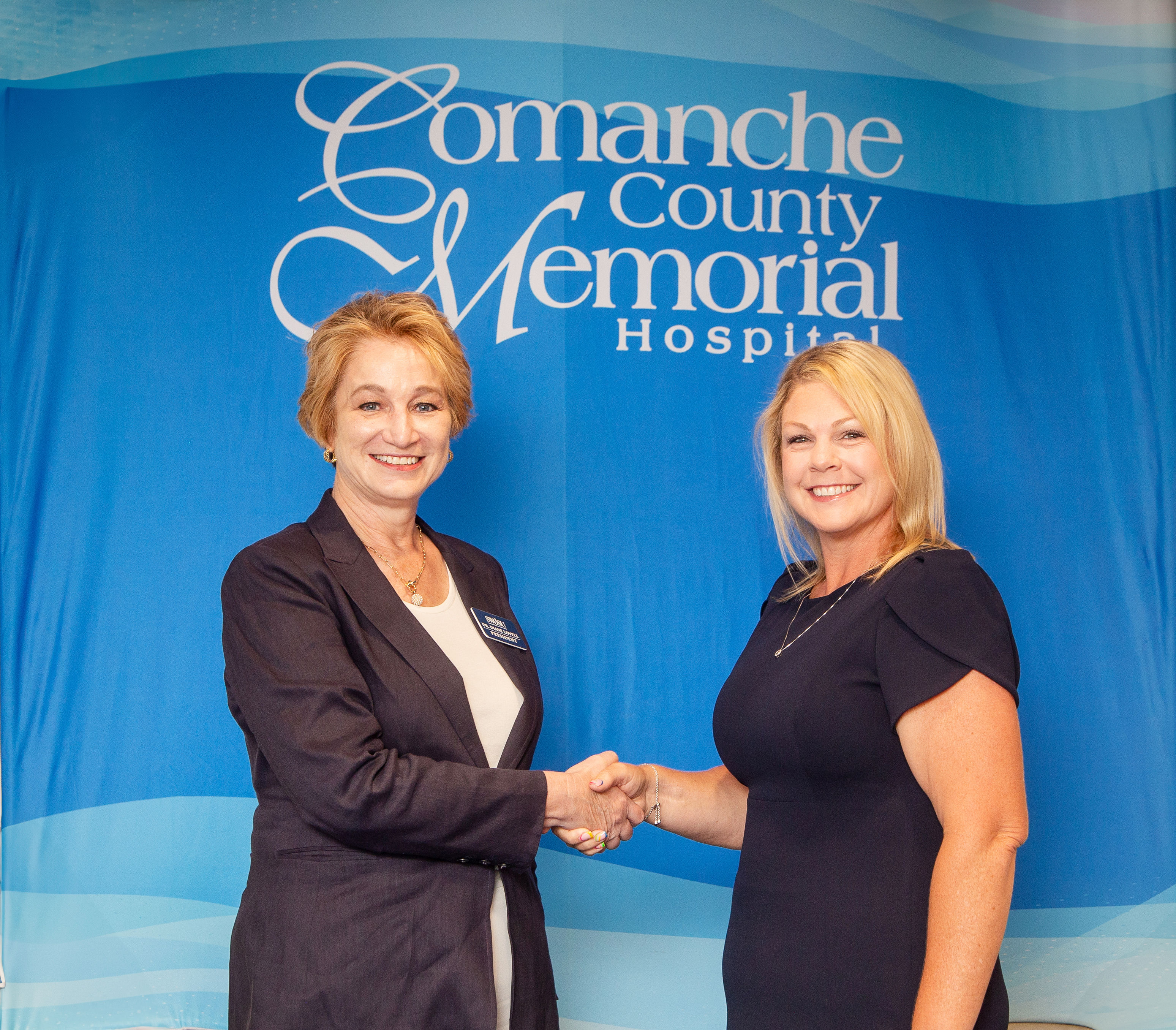 Dr. Diana “Diane” Lovell, President of SWOSU (left) and Melissa Alvillar, MSN, NE-BC, RNC-OB and Chief Nursing Officer of Comanche County Memorial Hospital.