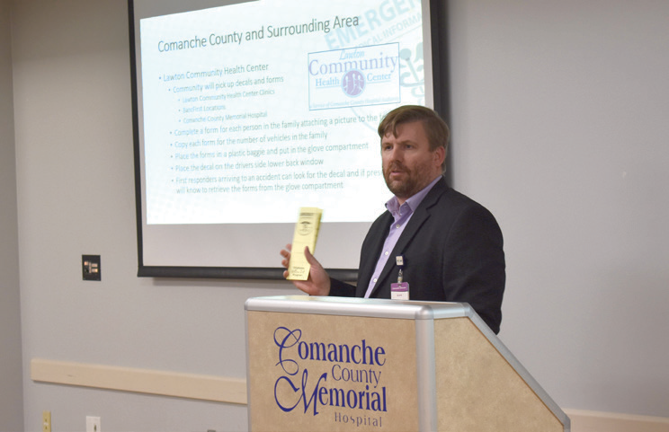 First Responders and Lawton Community Leaders launched the first Yellow Dot program in Oklahoma on Thursday. 25,000 dots and forms are making their way into the community. The program is sponsored by Lawton Community Health Center and BancFirst, and is FREE to everyone. Pick up your packet at one of the locations listed, complete the form, attach your picture, put the form in a zip lock baggie and put it in your glove box. Then attach the Yellow Dot to the back window of your vehicle. That’s it! If you are in a car accident, first responders will see the Yellow Dot on your back window and know to look in the glove box for your medical information. Having this crucial information during the first hour following a traumatic event could be the difference between life and death. Get your Yellow Dot packet here at CCMH today!